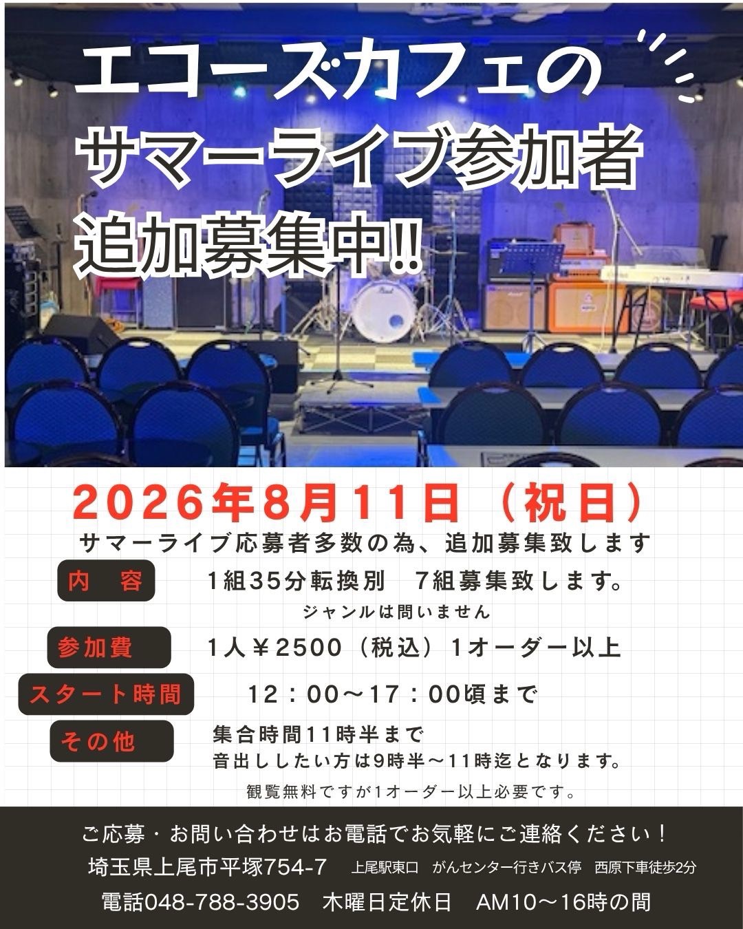 サマーライブ応募者多数の為、追加募集致します